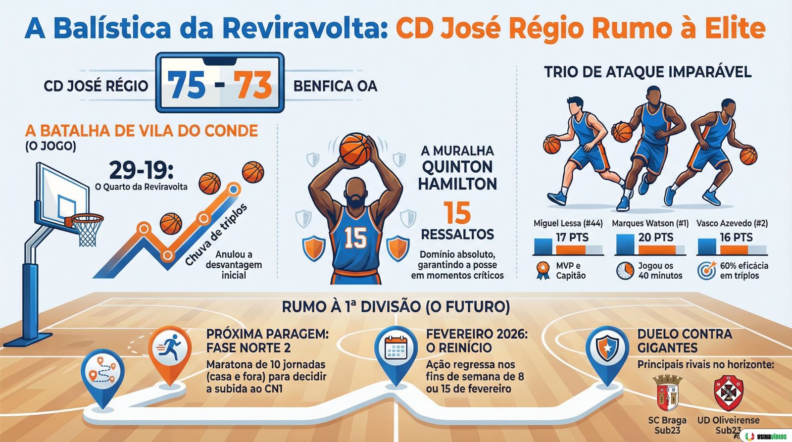 O Futuro Começa em Fevereiro Com este triunfo, o CD José Régio entra no lote de elite das 6 equipas que vão disputar a fase de grupos até abril. A “maratona” de 10 jornadas arranca já no dia 8 de fevereiro, com uma deslocação difícil ao terreno do SC Braga Sub23.