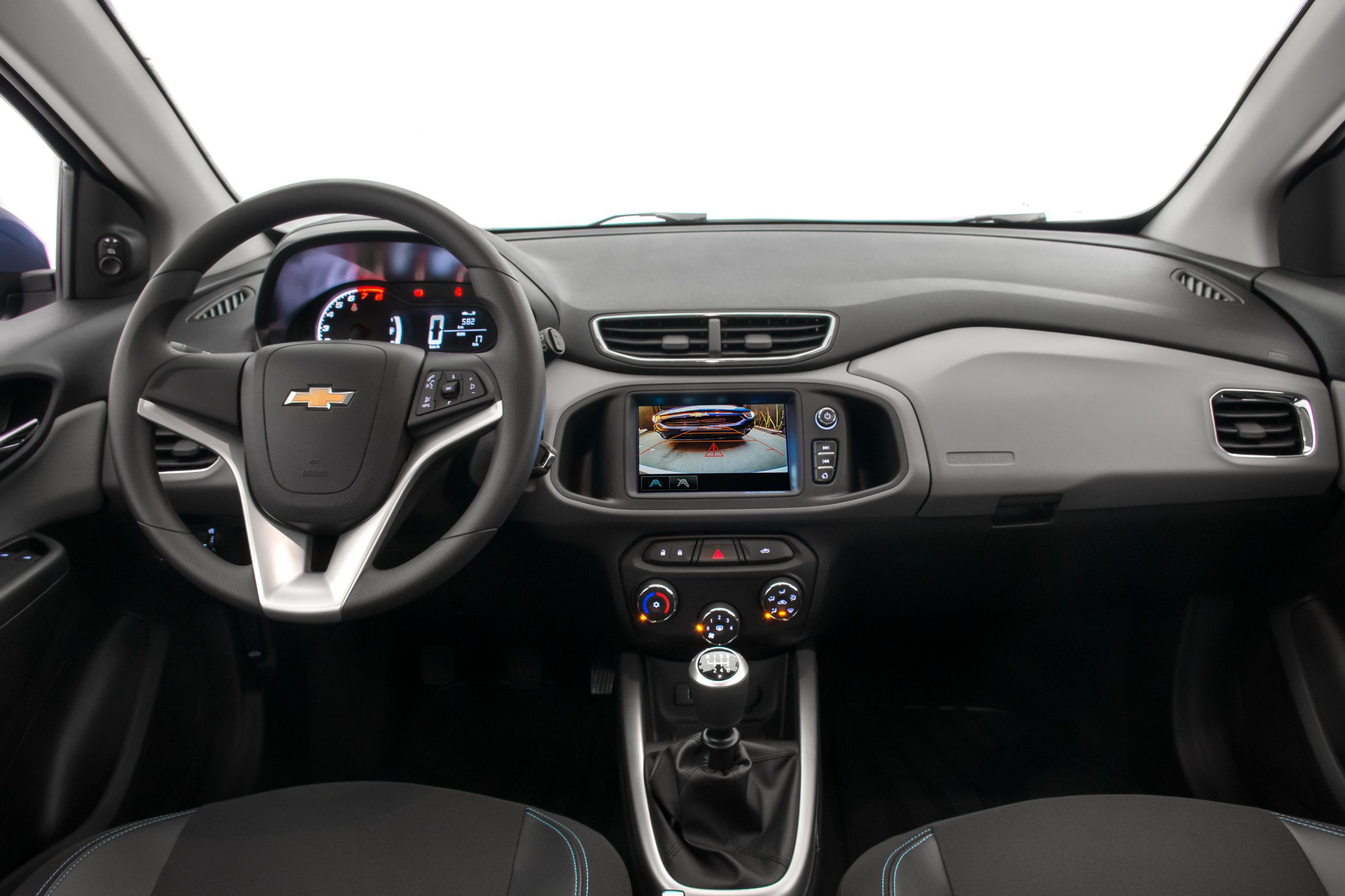 Computador de bordo e volante com controle do sistema de áudio também são outras tecnologias presentes em toda a gama. A configuração LT 1.0 do Onix tem multimídia Mylink, além da câmera de ré, ganha também os retrovisores externos com ajuste elétrico e nova moldura do console da alavanca do câmbio de seis marchas; enquanto a configuração LT com motor 1.4 adiciona roda de alumínio aro 15 com acabamento exclusivo e grade com moldura cromada.