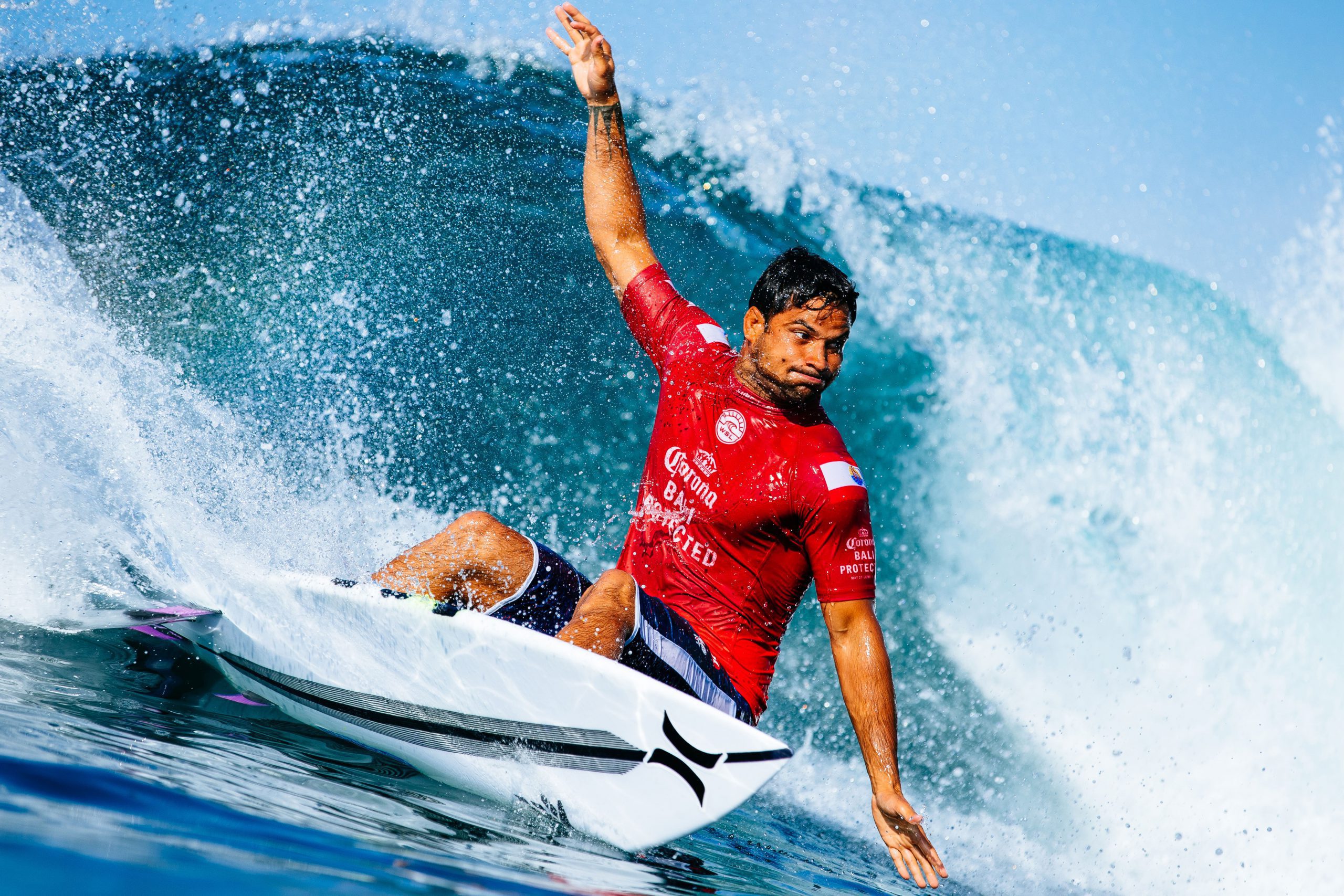 Heat 1: Michel Bourez (PYF) 16.17 def. Griffin Colapinto (USA) 14.43