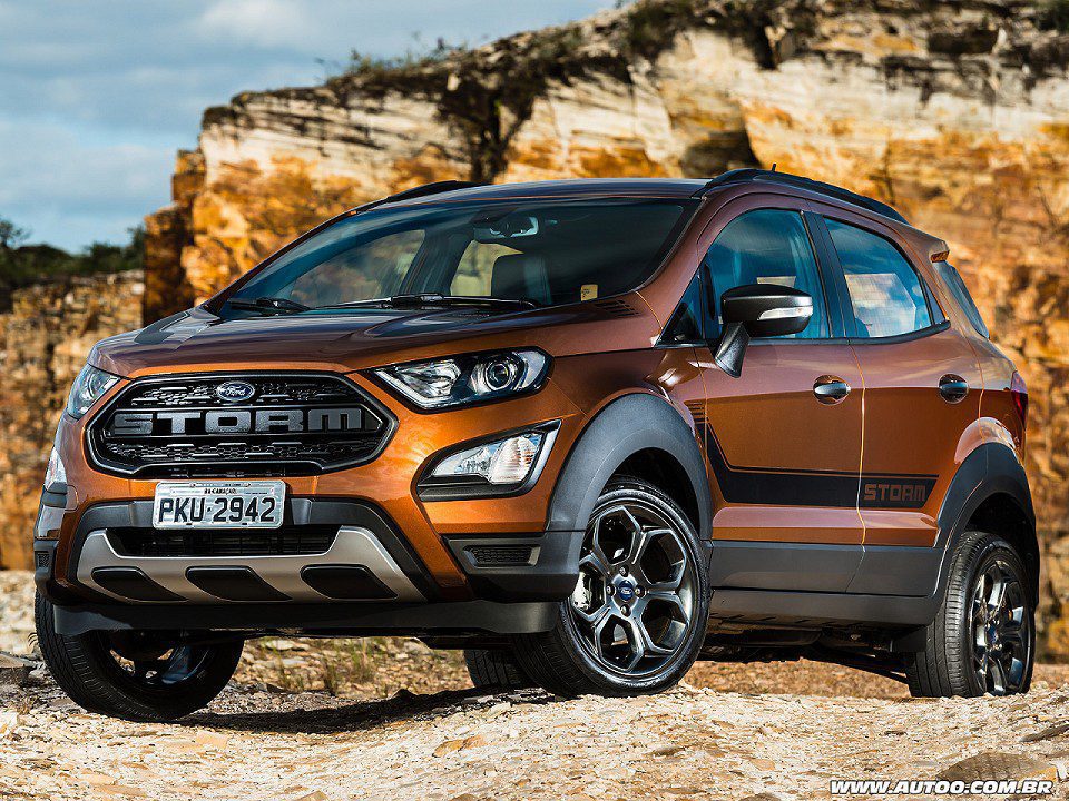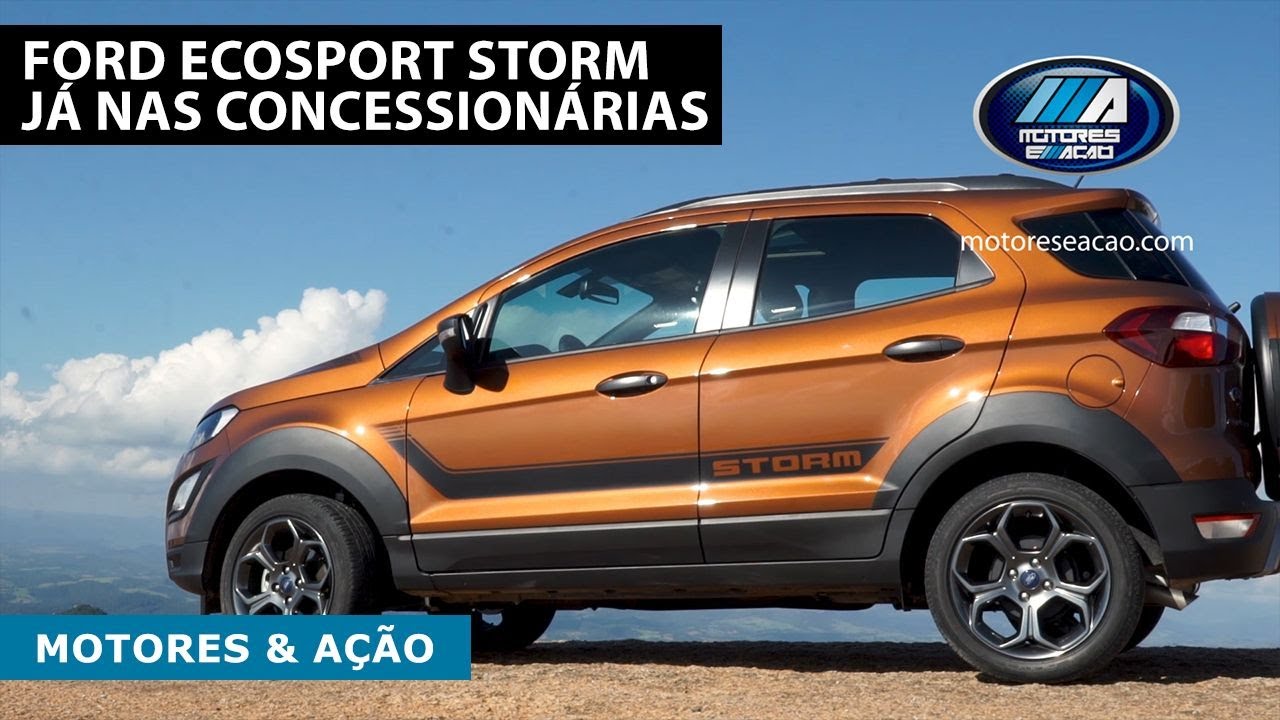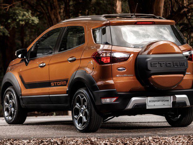 A grade dianteira com o nome Storm em destaque, as rodas de 17 polegadas e as faixas esportivas são detalhes exclusivos do seu design. O EcoSport Storm vem com central multimídia SYNC 3, tela de 8 polegadas, teto solar elétrico, acesso inteligente, partida por botão, câmera de ré, acendimento automático dos faróis e sensor de chuva. O interior também tem acabamento especial, com bancos de couro, painel “soft” e detalhes em laranja acetinado.